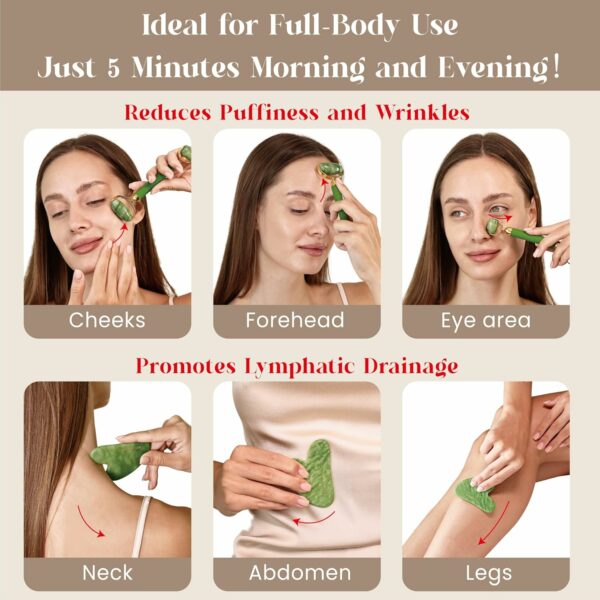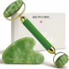 EXCELLENT MATERIALS: The gua sha & facial roller set is made by 100% Xiuyan Jade, which is carefully selected for uniform color and a smooth, lustrous surface. Each one is unique