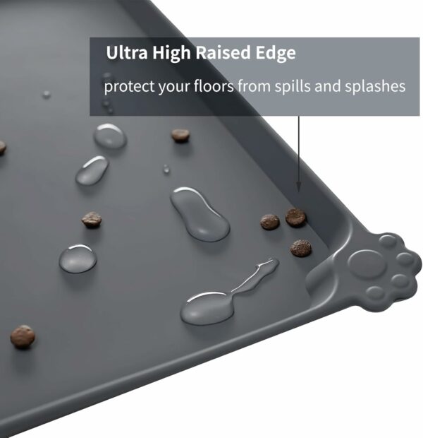 High-raised edges: say goodbye to messy floors with our mats’ high-raised edges that protect your floors from spills and splashes. Keep food and water contained and your floors mess-free