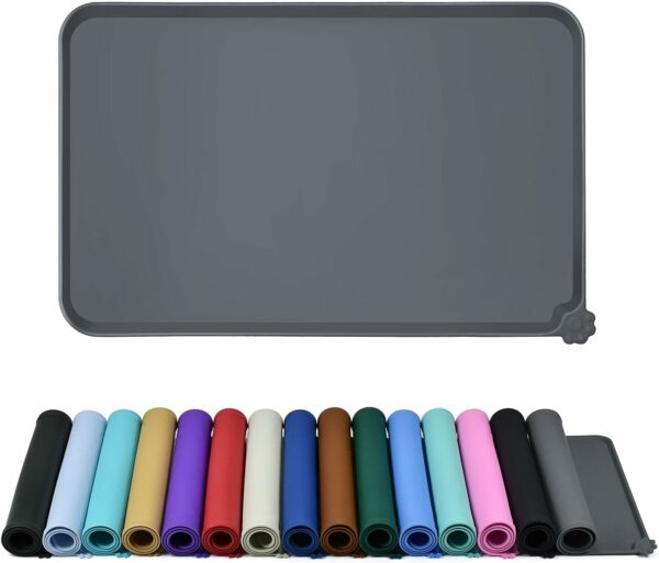 Various sizes available: our pet mats come in 5 different sizes – 18.5″ x 11.5″, 20″ x 15″, 24″ x 16″, 28″ x 18″, and 34.5″ x 23″. Suitable for all kinds of pets, from puppies to large pets, choose the perfect size for your furry friends and avoid messy spills at mealtime