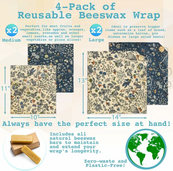 REDUCES PLASTIC WASTES beeswax food wraps are made from 100% organic beeswax cotton and jojoba oil; making them biodegradable compostable and much better for the environment; beeswax wrap is sustainable reusable and a great alternative to plastic