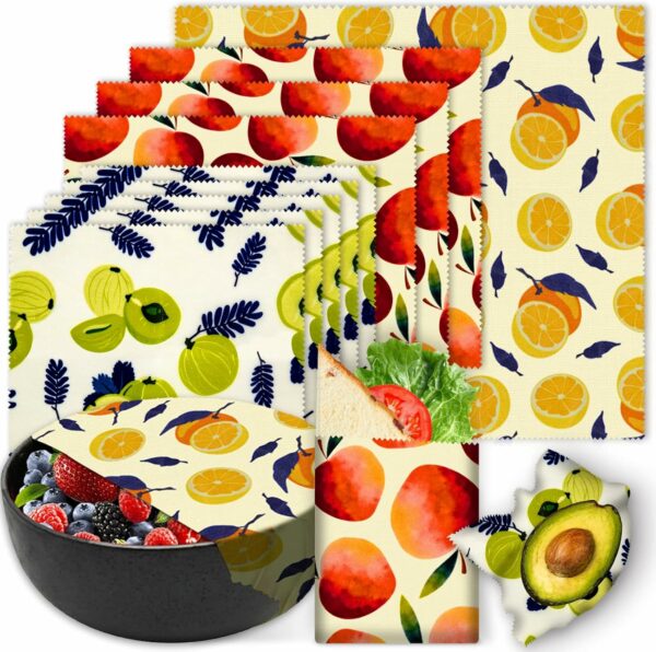 ♻️【Food To Stays Fresher For Longer】 Our beeswax food wraps can create air tight seals which will keep your food fresh and delightful. Our premium reusable food wraps with beeswax are not only environmentally friendly and highly sustainable it also makes sure your food stays fresher for longer.The properties of beeswax and jojoba oil help keep food fresher and allow food wraps to be used again and again.