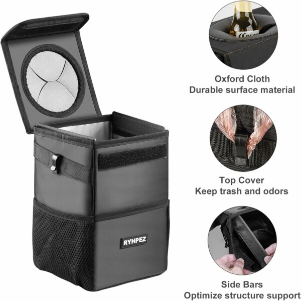 Ryhpez Car Trash Can with Lid – Car Trash Bag Hanging with S…