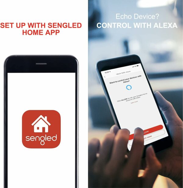 No Hub Required: Connect to your home’s secure 2.4GHz WiFi network directly (not support 5GHz); No need for a smart hub or extra equipment. All you need is your smartphone, the Sengled Home App and a 2.4GHz WiFi router to start controlling your smart lights from anywhere. Live customer service based in the U.S.