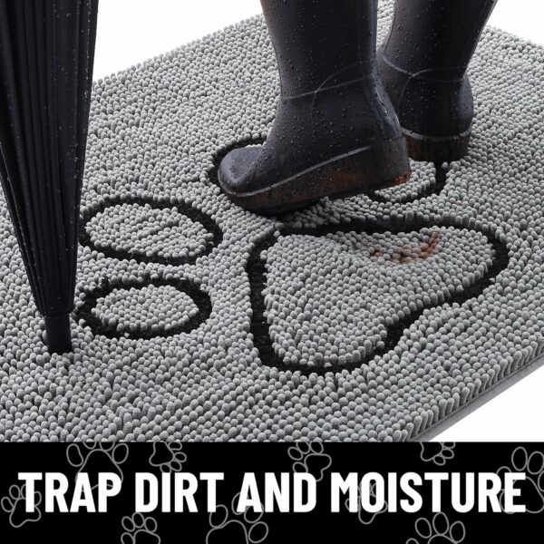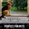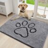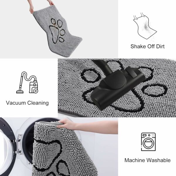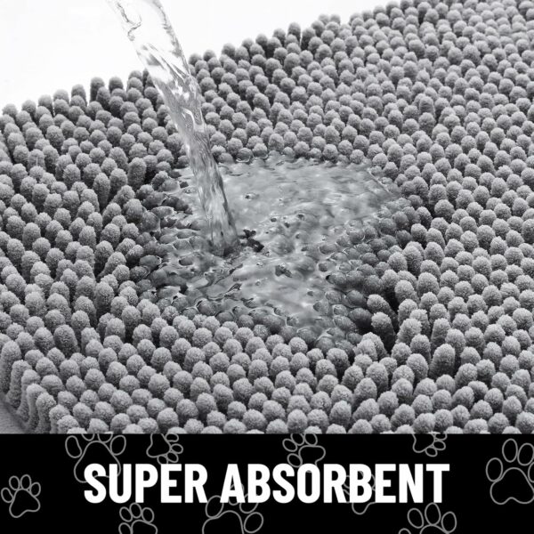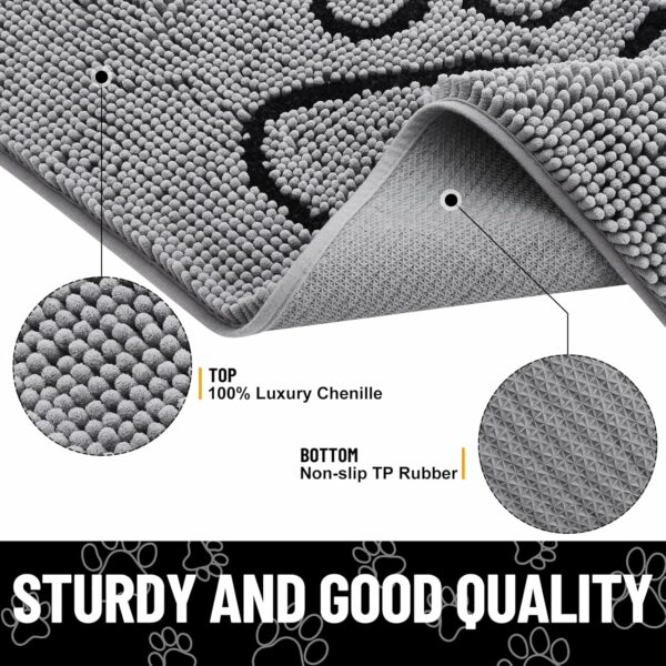 [Non-Slip Textured Rubber Base] Our mud mat for dog paws comes with a sturdy, textured rubber backing that prevents it from shifting and slipping. To prevent any slipping, it’s important to avoid placing the mat on a damp surface and to ensure that the floors beneath the mat are completely dry.