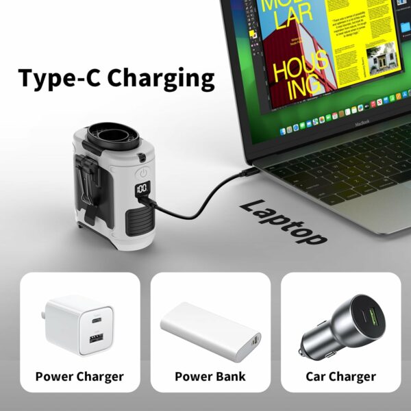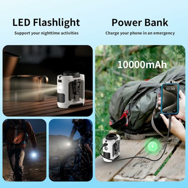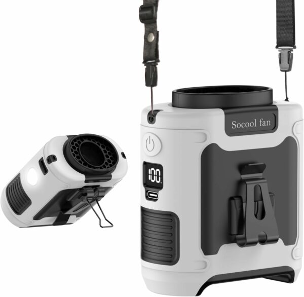 【5 in 1 Multifunctional Waist Clip Fan】An integrated waist clip fan, desk table fan, and neck fan. You can clip this belt fan to your shirts, belt, or pants, or you can hang the personal fan around your neck with the lanyard. With a bracket on the fan clip, you can put this USB fan on the desk. It can be used as an emergency power bank to directly charge a mobile phone, with no more fear of running out of phone battery. Built-in LED Light and SOS function, it not only provides long-term illumination but also helps you with outdoor activities