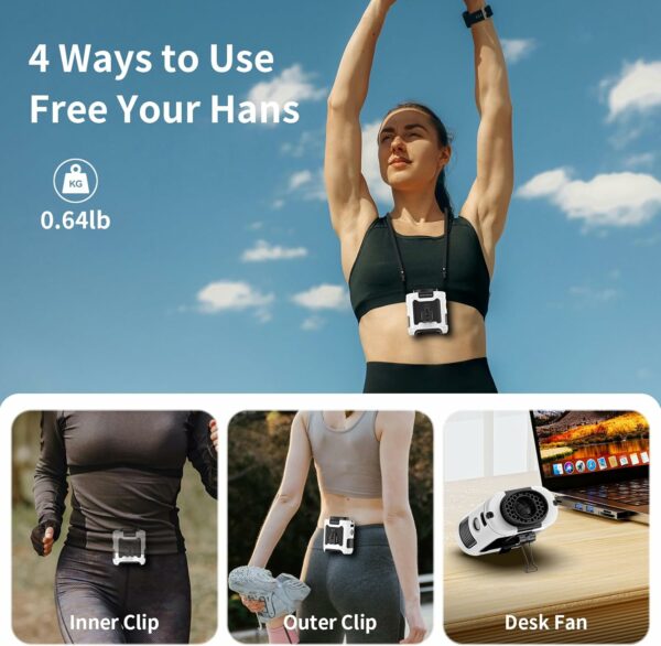 【With Silicone Cover, Non-Slip and Anti-Drop】Our mini portable waist fan is designed for various outdoor usage scenarios, catering to occupations like workers and farmers. It comes with a high-quality protective silicone leather case which protects from shock when dropped and ensures the body fan is not damaged at all. The upgraded Manganese steel clamp provides stronger gripping force, always keeping the wearable fan firmly, and is more durable. Practical design with two clips facing opposite directions allows for more placement options