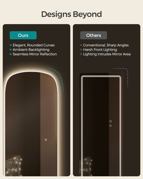 [Expanded Mirror Width] Our wall mirror is 2.8″ wider than standard mirrors, providing a better reflection. Whether you’re preparing for a special occasion or your everyday routine, our mirror ensures a captivating reflection that leaves no detail unseen