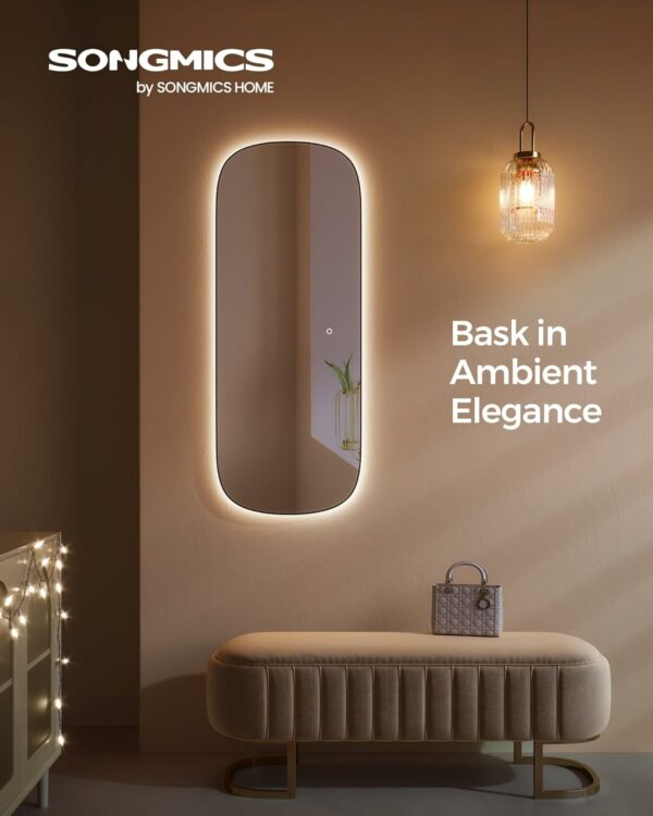 [LED Frameless Full-Length Door Wall Mirror] This wall mirror boasts a modern and elegant silhouette, creating an eye-catching mirror that doubles as wall art. With its minimalist arc design, it transcends traditional square shapes to redefine sophistication