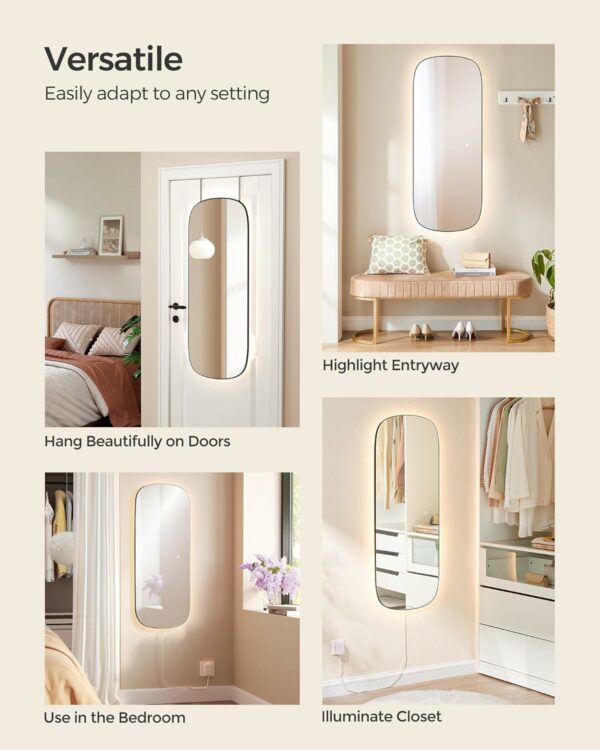[Door or Wall Mounted] The included assembly kit allows you to hang the full-length mirror on a door or mount it on a wall, adapting easily to your interior design while saving precious space