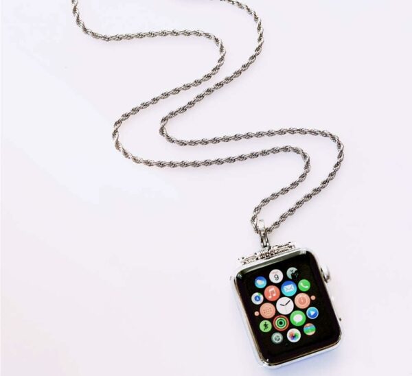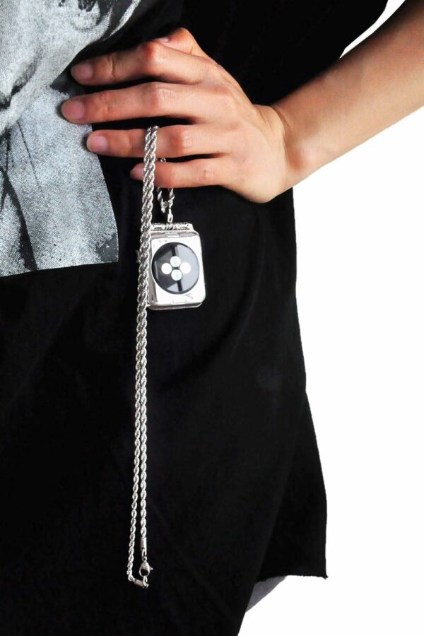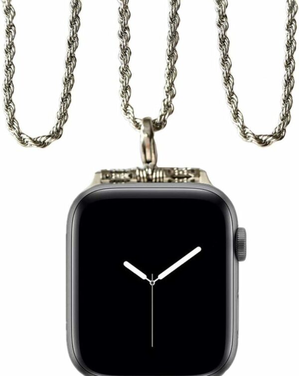 This stainless-steel necklace chain compatible with apple watch band series 7, series 6, series 5, series 4, series 3, series 2, series 1, SE, sport edition, all versions.