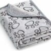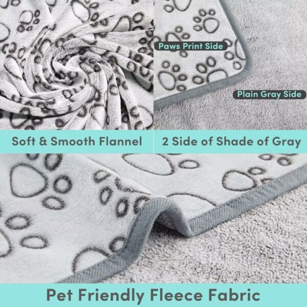 PREMIUM MATERIAL FOR PETS ONLY: Super Soft & Warm comfy fleece for your pets, exclusive cute paw prints design on the top, lovely solid gray color on the back, no fear of peeing, bitting, chewing and tearing. Your dog will love this dog products! A good match for puppy toys.