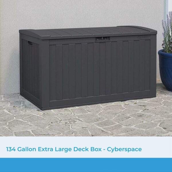 HIDDEN OUTDOOR STORAGE: Tuck away cushions, gardening equipment, sporting gear, and more away in this 134 gallon deck box