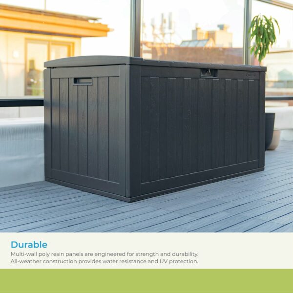 HEAVY DUTY OUTDOOR STORAGE: Multi-wall resin helps ensure this deck box can stand up against the elements