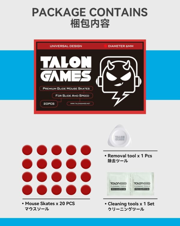 [METICULOUS DESIGN] – Just size, strictly designed according to real mouses, not only the shape, but also the thickness has been adjusted for every model. In addition, TALONGAMES mouse feet were appropriately thickened after consider the mouse sensor’s durability and accuracy carefully.[Note:There is a film on the surface of the product, please tear it off before use.]