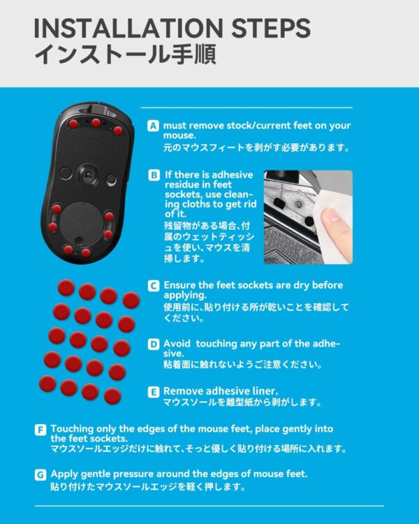 [LONGEVITY & BETTER COMPATIBILITY] – We include 1Sets (20Pcs) made of 100% virgin grade PTFE material for the lowest friction and eco-friendly, 3M no-residue adhesive,Achieve precise and comfortable operation on different materials mouse pads such as cloth or nylon.