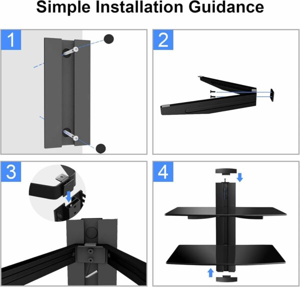 QUICK INSTALLATION: Mount the AV projector shelf plate to a single wood stud, concrete wall or drywall, and attach the glass shelf. Each unit also comes with end caps and an aluminum wall plate cover for an exceptionally clean look. Our after sales service always offer you the best solution within 24 hours.