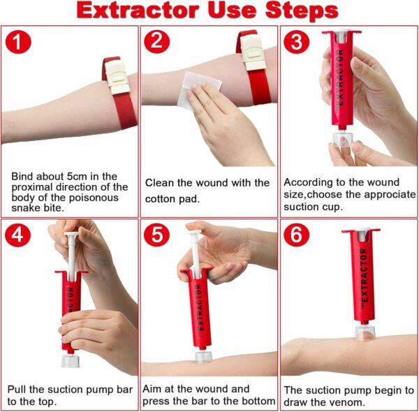 【Top Practical Stings Bites Survival Tools】Snake bite kit by WAEKIYTL is a sturdy, reliable First Aid tool for extracting subcutaneous venom from snake bites, bee stings, wasp stings, etc. Note, venom extractors work well to pull venom from just beneath the skin but not from within the muscle tissue. Effectiveness will vary depending upon where the bite/sting occurred and how deep it is