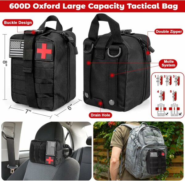 The pouch made of military grade high-density 1000D Oxford, which is sturdy, durable, portable and water-resistant, its portable size but offer large compartments and plenty of rooms to add your vital supplies gear. Perfect companion for any outdoor activities!
