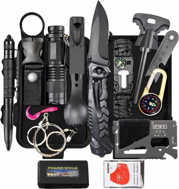 👍 Widely Used: The 13 in 1 professional survival gear tool kit includes emergency supplies that are suitable for outdoor survival or camping. It is ideal for those who like hiking, hunting, wilderness survival, fishing, outdoor adventure, hiking and outdoor camping.