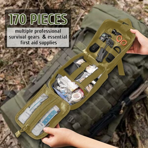 【A Must-have for Bug Out Bag】ABPIR emergency survival first aid kit contains 170pcs professional practical tactical survival tools and essential first aid supplies, that can meet your different emergency or medical needs outdoor. It’s perfect for camping, hiking, hunting, backpacking, fishing, road trip, and wild adventures. This tactical trauma kit is a must-have for your bug-out bag.