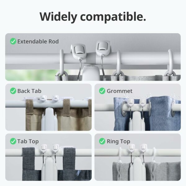 Twice as Strong, Now More Accurate: Curtain 3 (Rod) offers over twice the thrust compared to the previous gen, and our all-new upgraded motor ensures smooth operation even on heavy curtains (up to 15KG), perfect for thick curtain materials. Now comes with a positioning magnet to ensure precise control, eliminating the need for repeated calibration and prevents light leakage. When using an extendable rod please note if the diameter of the extendable area of your rod is less than 5/8 inch this device will not be compatible.