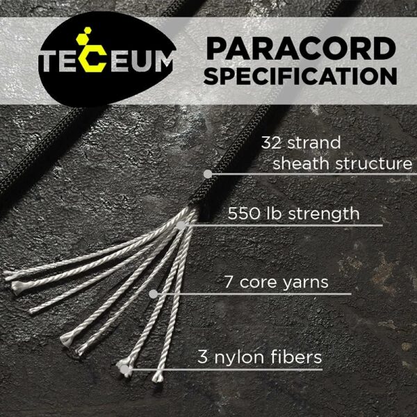 STRONG & DURABLE: Paracord Type III has 550 lb (249 kg) min strength; 32 strand sheath structure, 7 core yarns each made of 3 twisted nylon fibers. Thickness: 5/32-inches (4mm). Manufactured according to Mil Spec C-5040H.