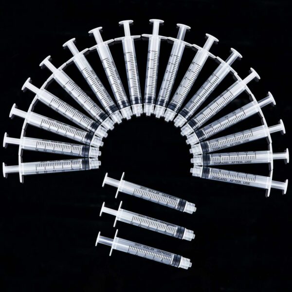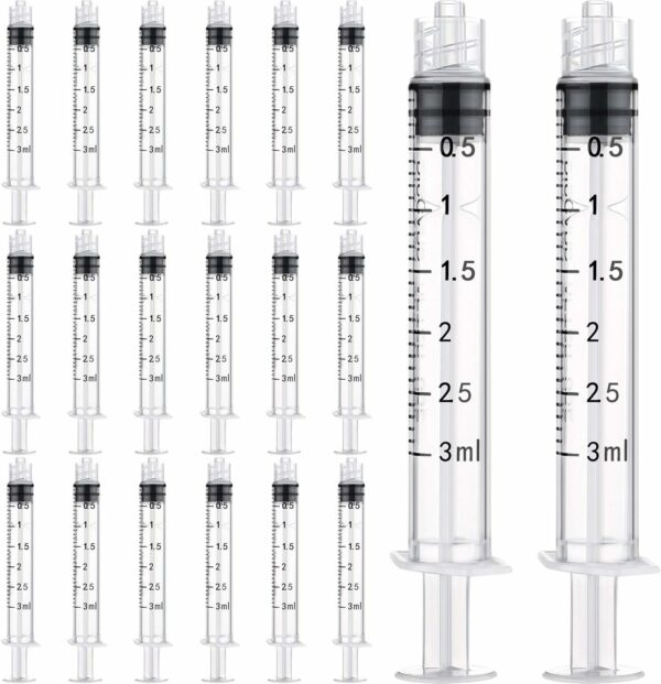 Quantity: comes with 20 packs plastic syringe luer lock with measurement, enough for use or replacement