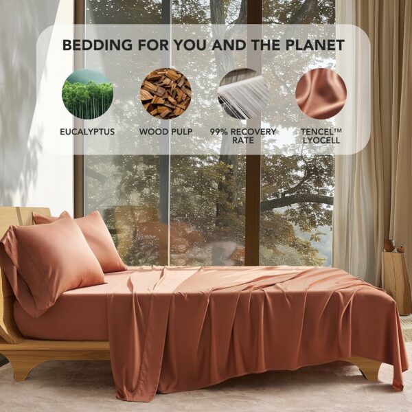 LUXE SILKY TEXTURE – Our TENCEL sheet set is made with 100% Lenzing TENCEL fibers sourced from Austria to ensure premium quality. Thoughtfully woven with silky-smooth softness, TENCEL Lyocell fibers offer breathable, cool comfort. Oeko-Tex Standard 100 certified safe and free from harmful substances.