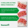 Tesmed Cellulite is the massager against cellulite imperfections. The invention features pairs of converging rollers that lift and squeeze the area with a “pinching” and “kneading” effect while simultaneously, pairs of diverging rollers work to stretch the skin. The action of the converging rollers promotes the expulsion of excess fluids and provides a toning effect, while the diverging rollers then relax the skin, giving it a smoothing effect.