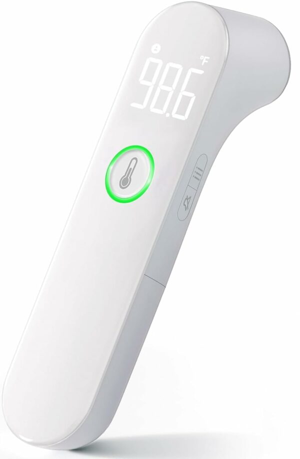 EASY TO USE & READ: This digital thermometer features an extra clear and large LED display, making it easy to read the temperature even in dimly lit rooms or at night. Simply hold the thermometer near the forehead, press the button, and within 1 second, the temperature reading will be displayed on the large LED screen.