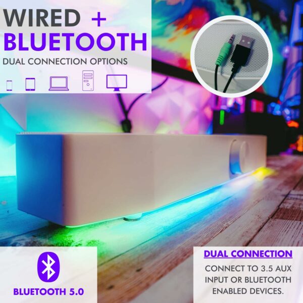 Wired or Wireless, Your Choice: Connect the monitor soundbar directly to your computer via the 3.5mm AUX cable or connect wirelessly via Bluetooth 5.0 to any BT enabled device