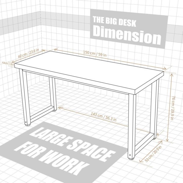 Perfect for the studio or home office space, this 59”*23.6” large desk is a comfortable mix of style and functionality. Spice up your working space, so that paperwork and projects will be more enjoyable tasks.
