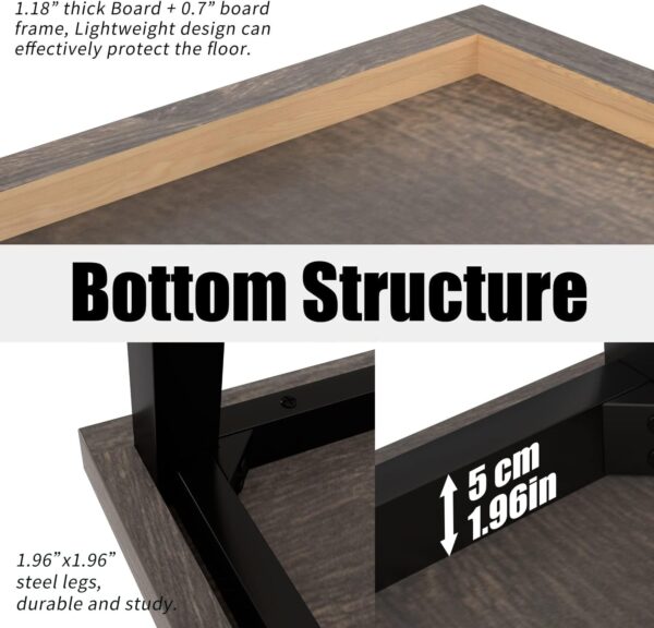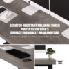 1.18” thick Board + 0.7” board frame, total 1.88” thickness desktop, ensuring the load capacity. Scratch-resistant melamine finish protects the desk’s surface from daily wear and tear. Lightweight design can effectively protect the floor.