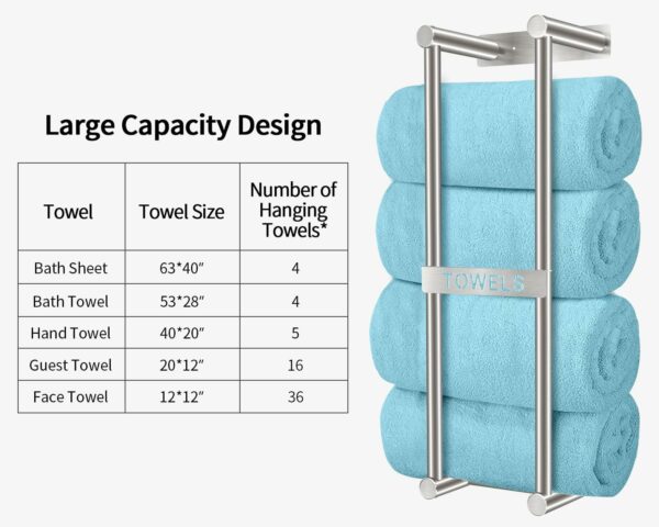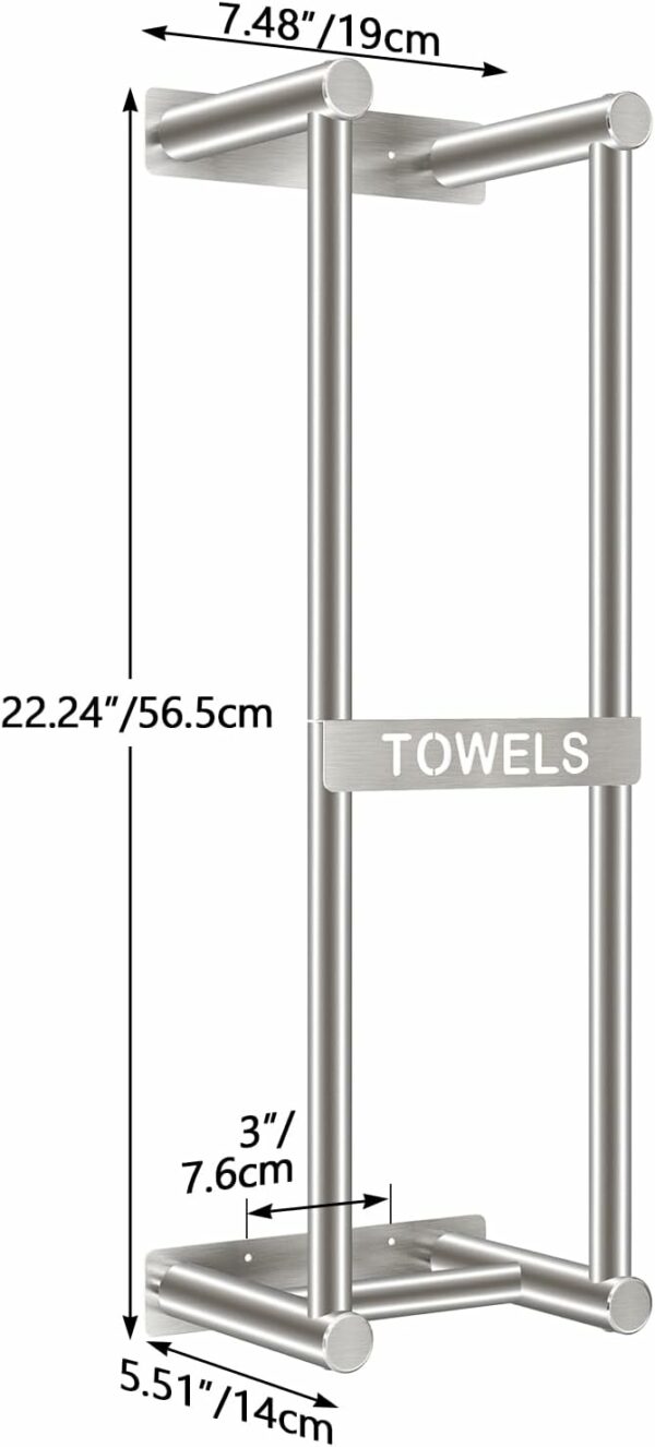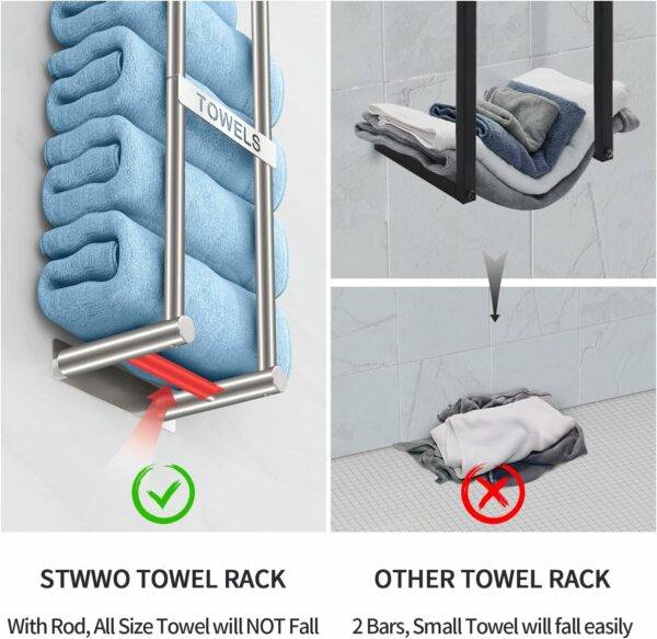 New Upgrade Crossbar: We added a crossbar at the bottom of bathroom towel rack, which can effectively prevent towels from drooping or falling. So no matter how big or small your towel is, it will not fall off
