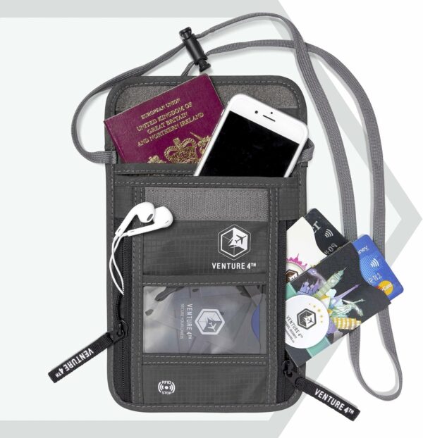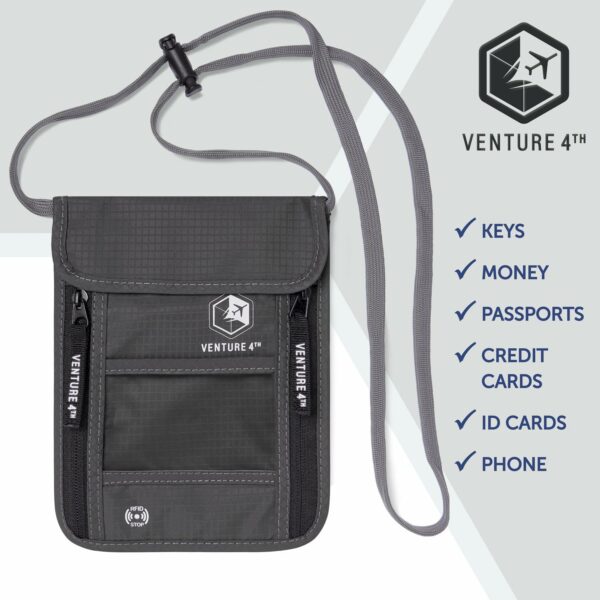 Designed according to the highest quality standards, the Venture4th passport holder and neck pouch will defend your possessions with durable, rip-stop nylon, and waterproof materials.