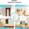 Multiple Application Scenarios: You can install the contact sensor on the front doors, garage doors, windows, mailboxes, safes, cabinets, and more. Watch the security barrier at the top of the stairs or in your child’s room. The smart window sensor can control other Tuya smart connected devices as the status of the door or window changes. For example, automatically turn on your smart lights when door is opened.