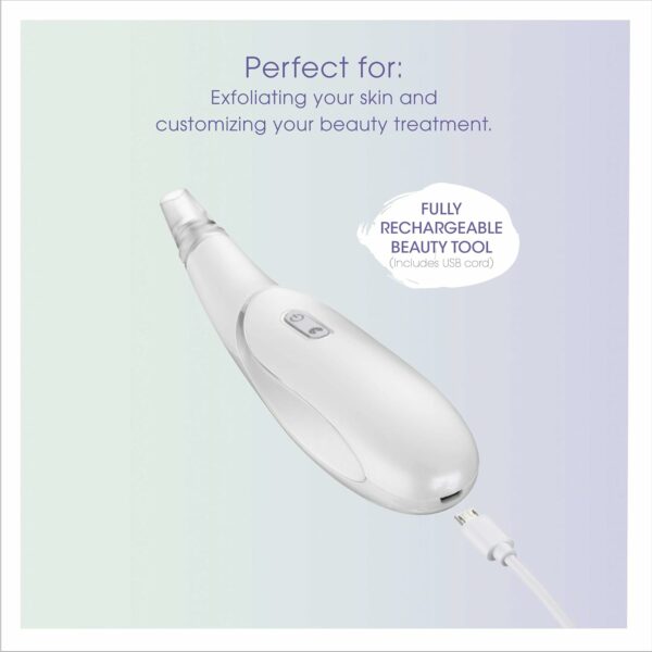 Simple 3-Minute Treatment: Reveal brighter, smoother, and even glowing skin with the True Glow by Conair Microdermabrasion machine. Fully Rechargeable beauty tool – includes UBS charging cord
