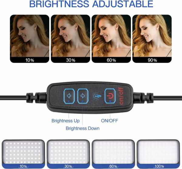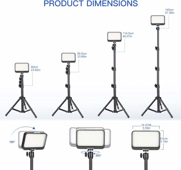 Video Lighting Kit:-The small LED panel light is equipped with a 1/4 universal ball head, which can adjust the panel 180°to to easily meet your different shooting angle requirements; cable control 10%-100% brightness level option. The up and down buttons can easily meet the needs of your shooting occasion.