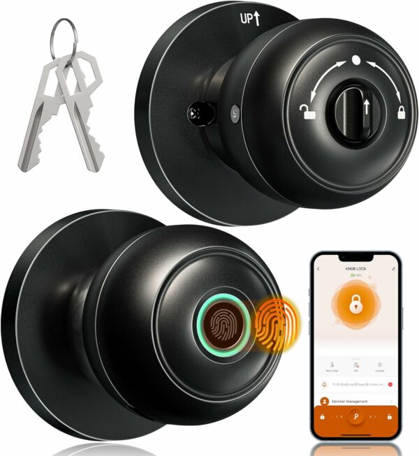 Three plus One Unlocking Ways: Our smart door knobs offer three unlocking options: fingerprint, app control, and mechanical keys. The low energy consumption ensures longer battery life, and you can monitor battery status in real-time via the app. If the battery runs out, use back-up keys or the emergency Type-C power supply to unlock