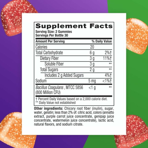 FIBER GUMMIES TO SUPPORT REGULARITY*: Each yummy 2-gummy serving provides 3g of fiber for regularity support* to help you feel your best.