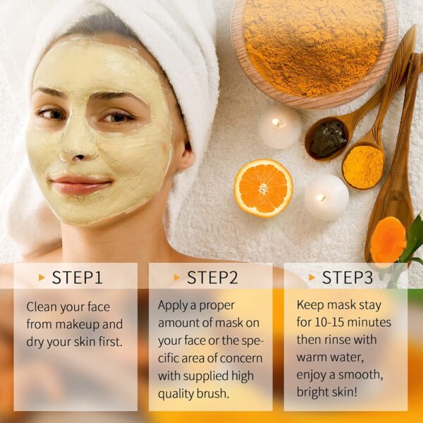 〖IMPROVE DULL & DRY SKIN〗The main ingredients vitamin c and turmeric has stronger effects of removing dullness. Vitamin C helps prevent pigmentation, which is effective in preventing sunburn, the clay mask for face is mixed with organic turmeric, that helps to improve the dullness of the skin, so that your skin is still soft and radiant. It is a great gift for anyone and also be a self-care gift