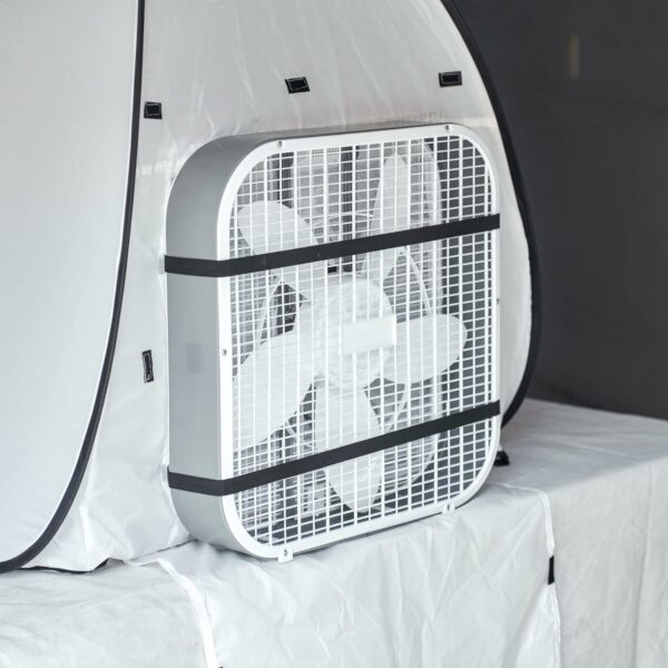 STRAPS FOR FAN AND FILTER: The shelter includes built in straps that allows the user to add a fan and filter for improved air flow and ventilation (fan and filter not included)