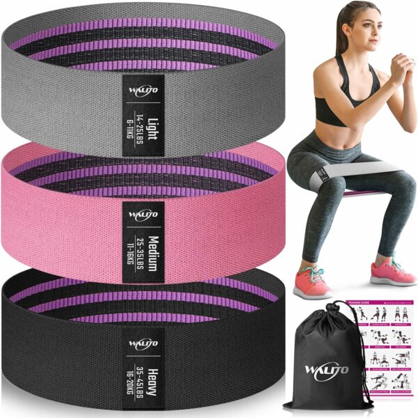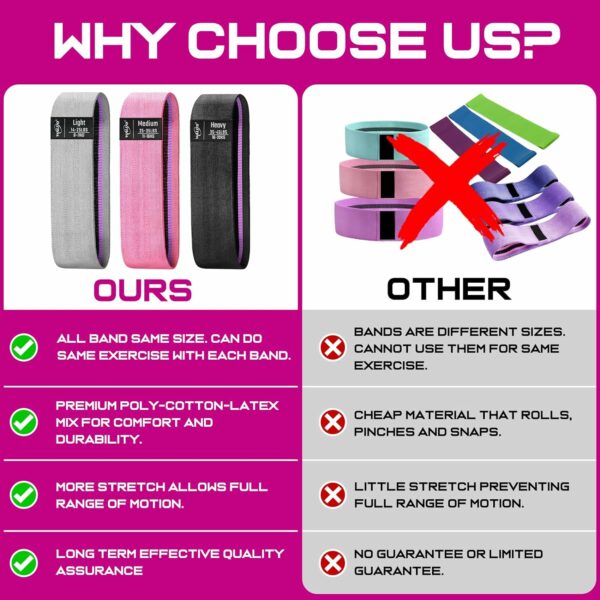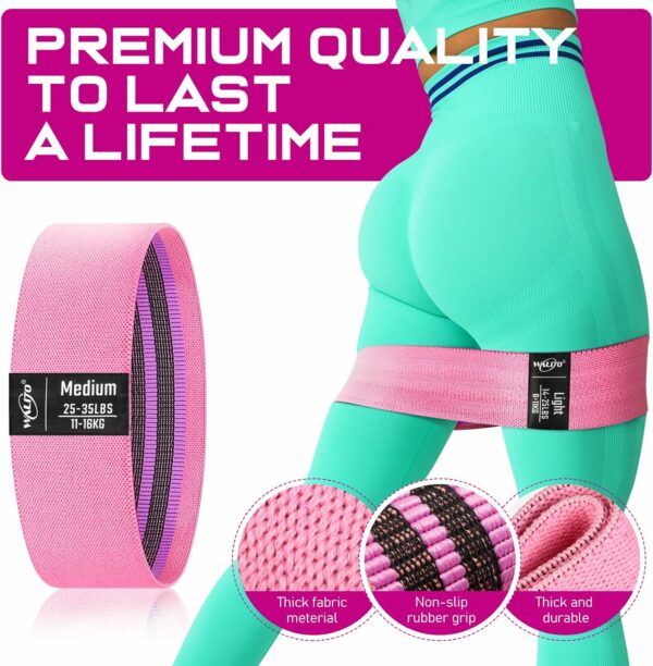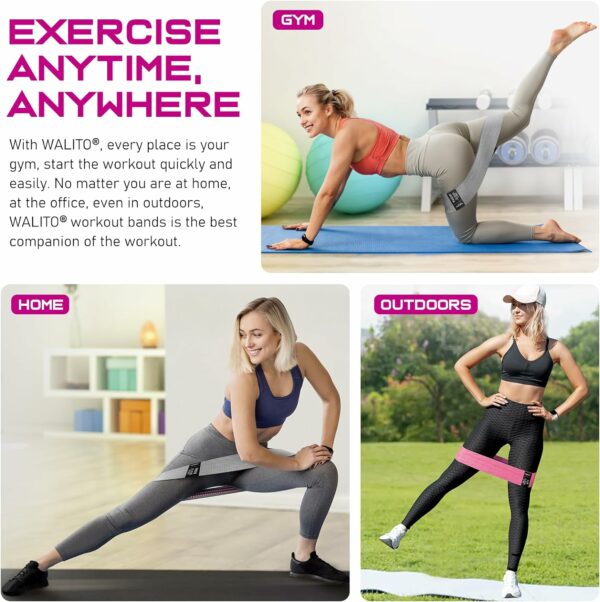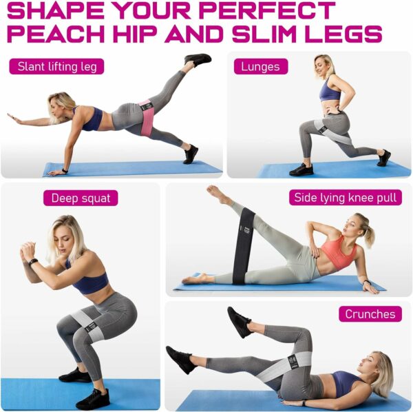 【Suitable for Many Exercise】- Our Exercise bands are ideal for assisting in P90x, CrossFit, Yoga, Insanity, Pilates, Hot Yoga, and Beach Body workouts. Soft fabric resistance bands will NOT slide or roll up during workouts,the best choice for sports and fitness.