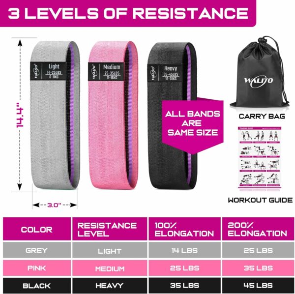 【Set of 3 Resistance Levels】- Our work out bands set is divided into 3 different levels of resistance :Light, Medium and Heavy. Never worry about the hip bands being too stretchy or too small, easily switch between the 3 levels to your preference anytim.