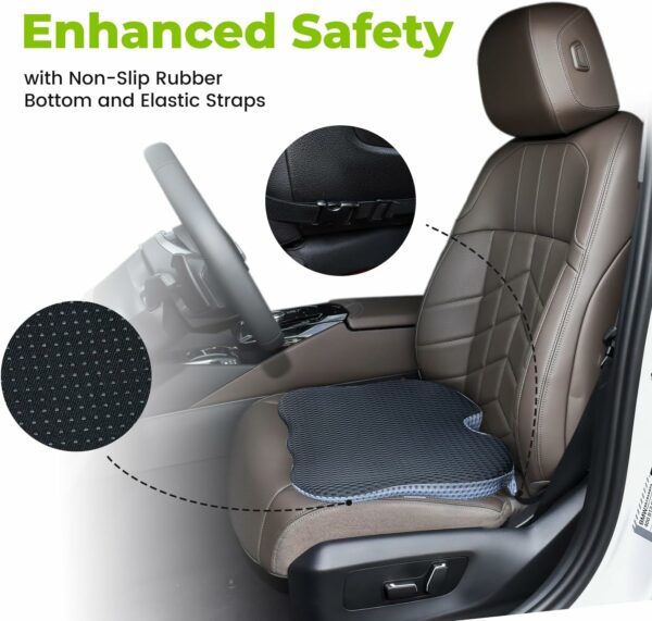 Enhanced Safety with Non-Slip Rubber Bottom and Elastic Straps: This car seat cushion features a non-slip rubber bottom and elastic straps to securely stay in place. Whether accelerating or braking, the cushion remains stable, ensuring safety and comfort
