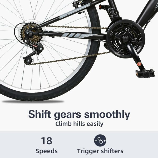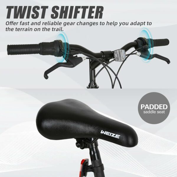 【Speeds】: Effortless gear change with 18-speed twist shifters and front and rear derailleurs.Help you find the perfect cadence to navigate your path ahead.