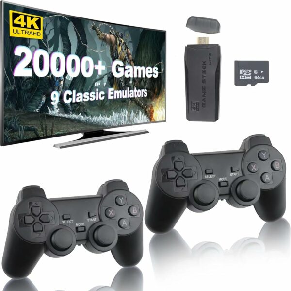 Product Description: Wireless Retro Game Console, Retro Game Stick with Built-in 9 Emulators, 20,400+ Games, 4k Output, and 2.4 Wireless Controller, Plug and Retro Play Video Games for Tv (64 G) Material: ABS Color: as the picture shows, (Due to the difference between different monitors, the picture may have slight color difference. please make sure you do not mind before ordering, Thank you!) Package weight: 387g Package size: 16.3×11.6×9.7cm,(Please allow 1-3mm error due to manual measurement. please make sure you do not mind before ordering.)