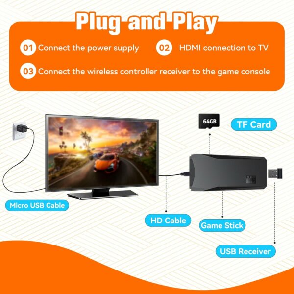 Plug and Play: Plug and play game console, no complicated settings required, just connect the device and controller to play games, simple operation.