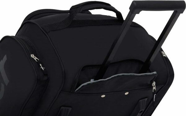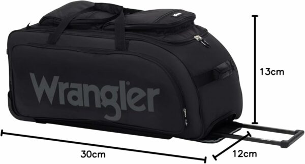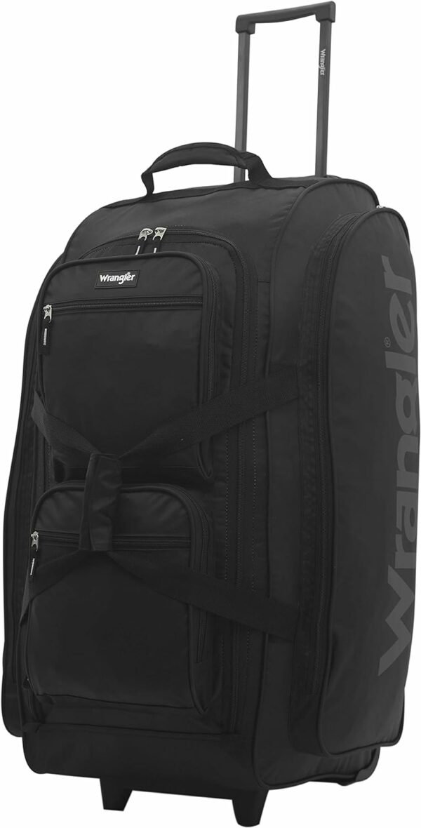 Wrangler 30″ Upright wheeled rolling travel duffle bag with more packing space than luggage. Best use for long vacations and family trips.