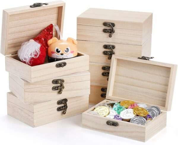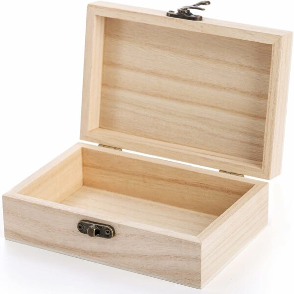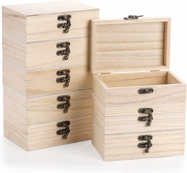 Yarlung 8 pack wooden boxes for crafts measure 6″L x 4″W x 2″H, unfinished wood light brown surface, ready to be painted, stained, decorated and embellished for unique DIY crafts project.